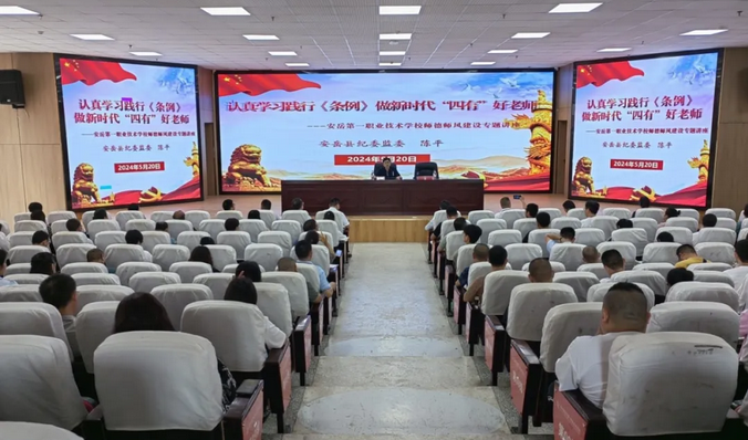 5月20日下午,安岳县纪委副书记、监察委副主任陈平莅临安岳第一职业技术学校,开展了题为《认真学习践行<条例>,做新时代“四有”好老师》的师德师风专题讲座。学校全体教职工参加了本次讲座。