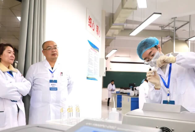在化学实验技术比赛现场,此次赛项中高职组均为团体赛,由2名学生分工完成A、B两个模块的工作,主要考查选手的化学基本理论知识、科学的实验工作方法和技巧,实事求是的科学态度、严谨细致的工作作风、清洁整齐的良好工作习惯和职业健康、安全、环保意识等。每支代表队的选手沉着应战,展现了新时代化工技术人才的风采。