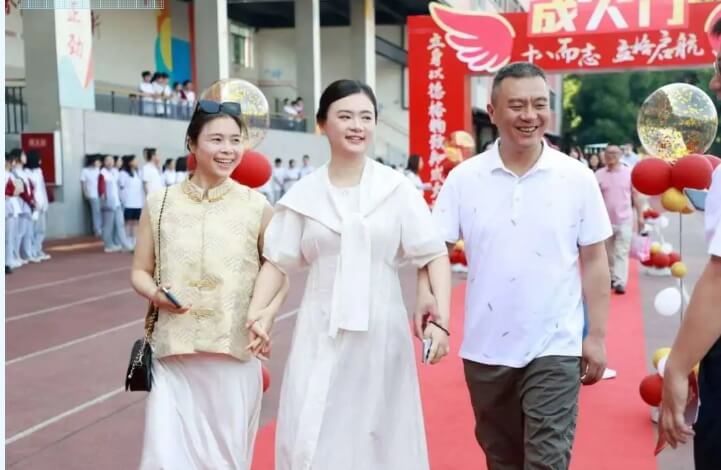 随着《一路生花》的旋律响起,高三学子在班主任和家长的带领下依次跨过象征责任与成长的“成人门”。