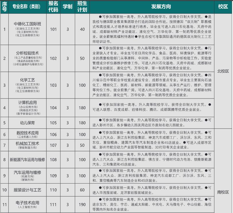 以上文章内容就是2023年成都石化工业学校招生简章的情况介绍,不知道你看了这篇文章内容后是否还有其他方面疑问,如果你还想了解更多成都中职学校招生简章,请关注前景通!