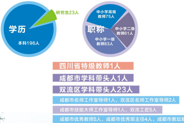 学生荣获四川省中职学校学前教育专业技能大赛二等奖1项,成都市学前教育专业技能大赛-等奖3项, 双流区学前教育专业‘户外游戏活动技能大赛’一等奖1项、二等奖1项,全国中等职业学校文明风采大赛二等奖1项,四川省中职文明风采大赛特等奖2项、一等奖2项、二等奖2项,成都市中职文明风采大赛一-等奖4项, 双流区艺术节一等奖5项、二等奖4项,多名教师荣获“优秀指导教师”称号。凭借扎实的专业技能和良好的职业素养,本专业毕业生获得用人单位的-致好评,一次性对口就业率达98%以上。2016年增设了中高职衔接班,对口高考成绩优秀,升学率稳步提升。